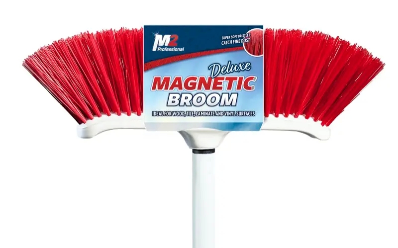 M2 BM-4200RD Venus Curved Magnetic Broom with 48" Metal Handle - Red