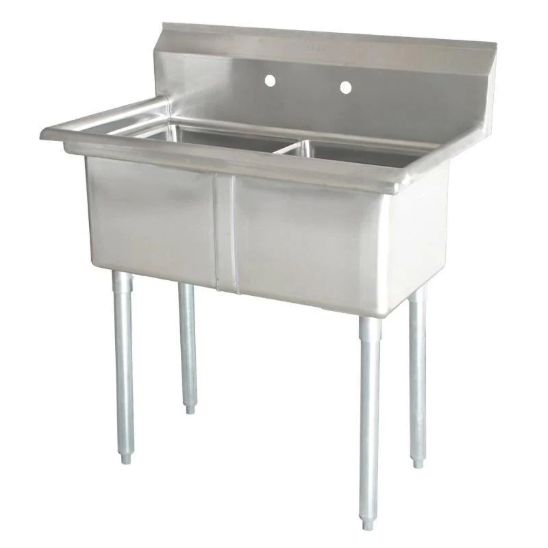 Omcan 22119 Two Tub Sink stainless steel with 1.8" Corner Drain Without Drainboard