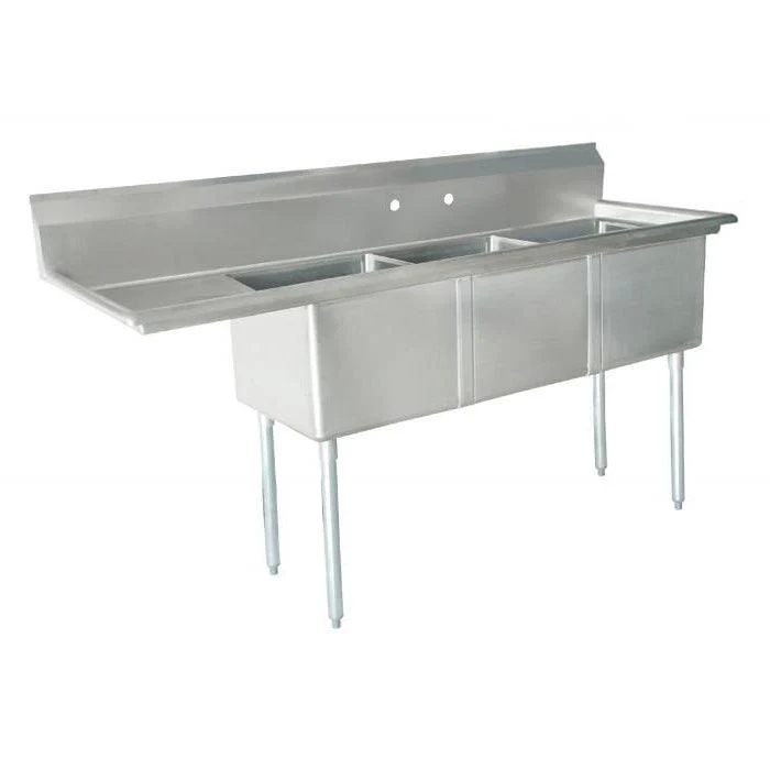 - Three (3) comparment sink with LEFT stainless steel drain board