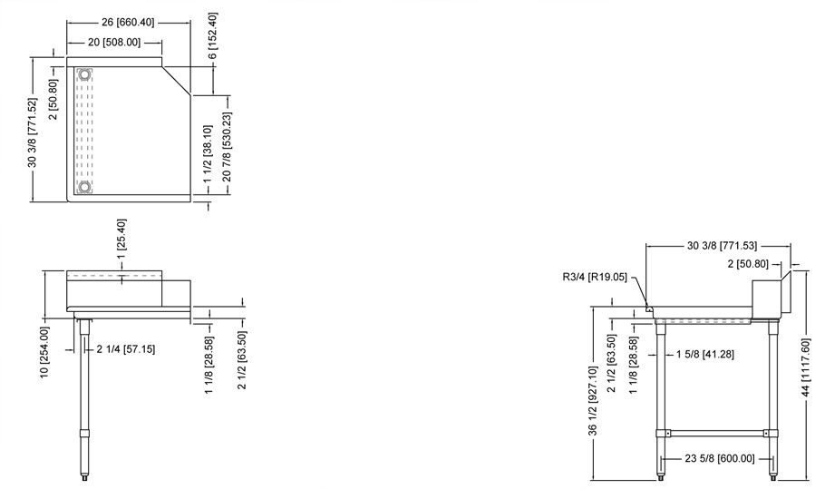 - 26” Length left side clean dish table