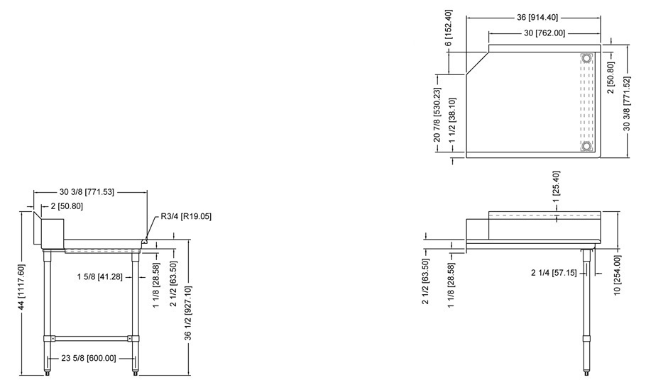 - 36” Length right side clean dish table