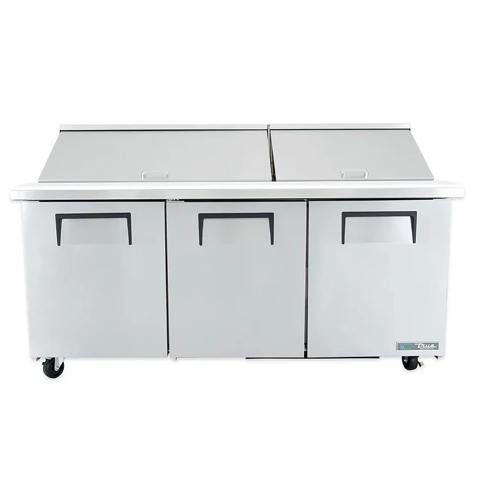 True 72" MEGA Stainless Steel Hinged Solid 3 Doors Sandwich table / Prep Cooler TSSU-72-30M-B-ST-HC