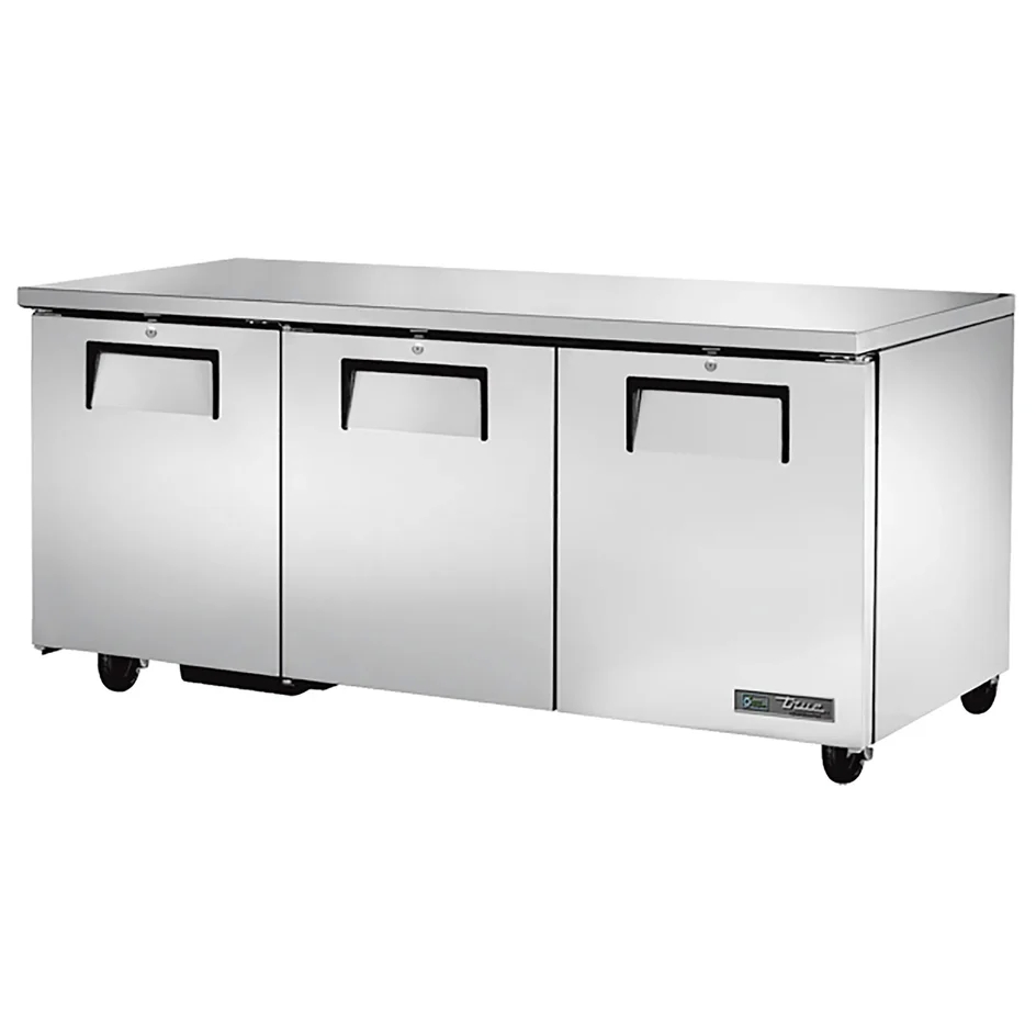 True 72" Stainless Steel Hinged Solid 3 Doors Under Counter Cooler TUC-72-HC