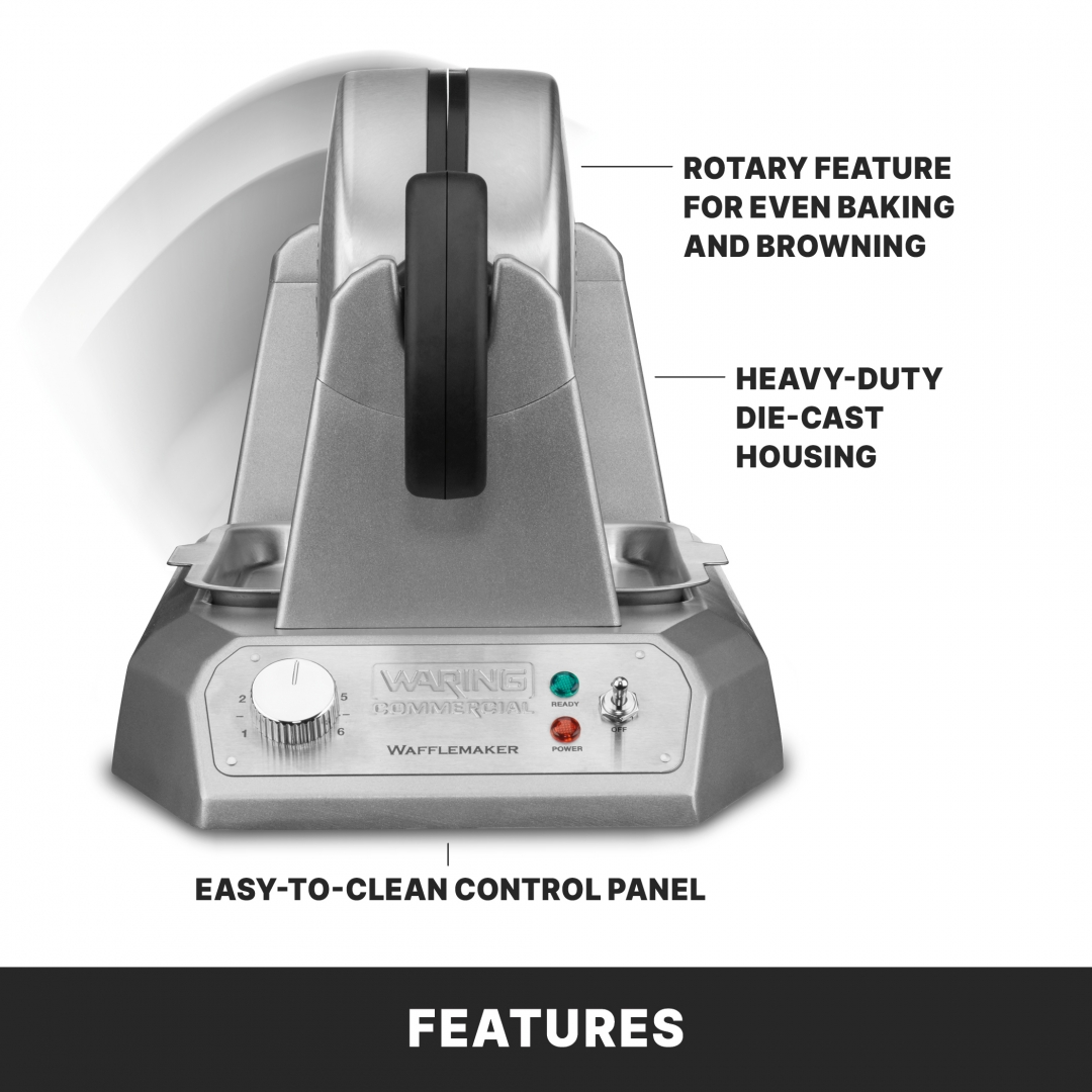 - Produces up to 30 waffles (5/8 inch thick) per hour