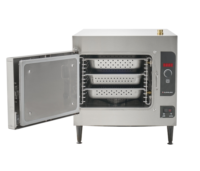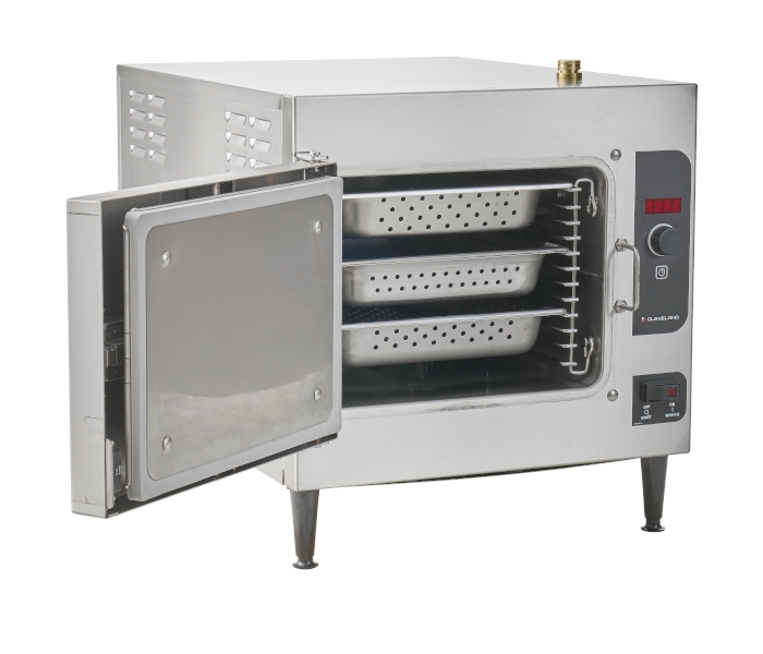 - Cooking Capacity for up to three 12" x 20" x 2-1/2" deep Cafeteria Pans