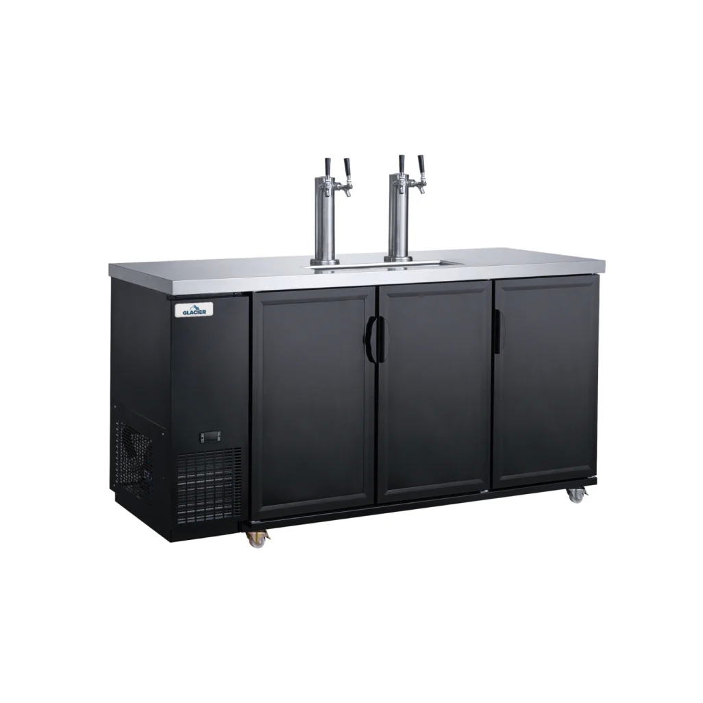 Glacier 73" Dual Tap Kegerator / Beer Tap Cooler 3 hinged black solid doors Black Exterior GDD-73